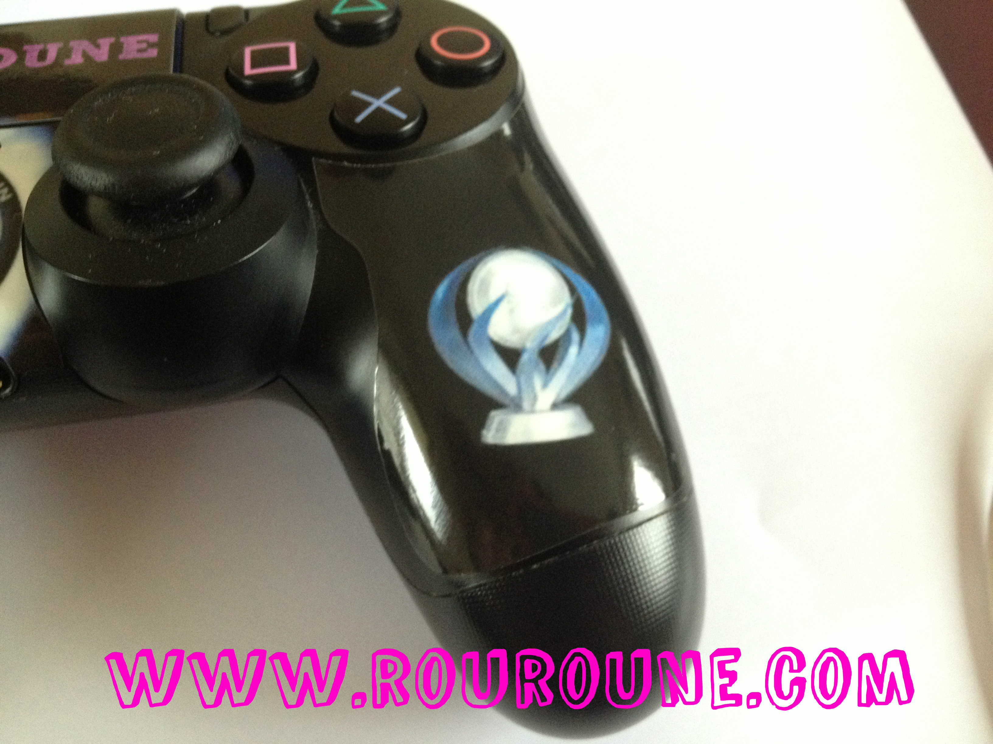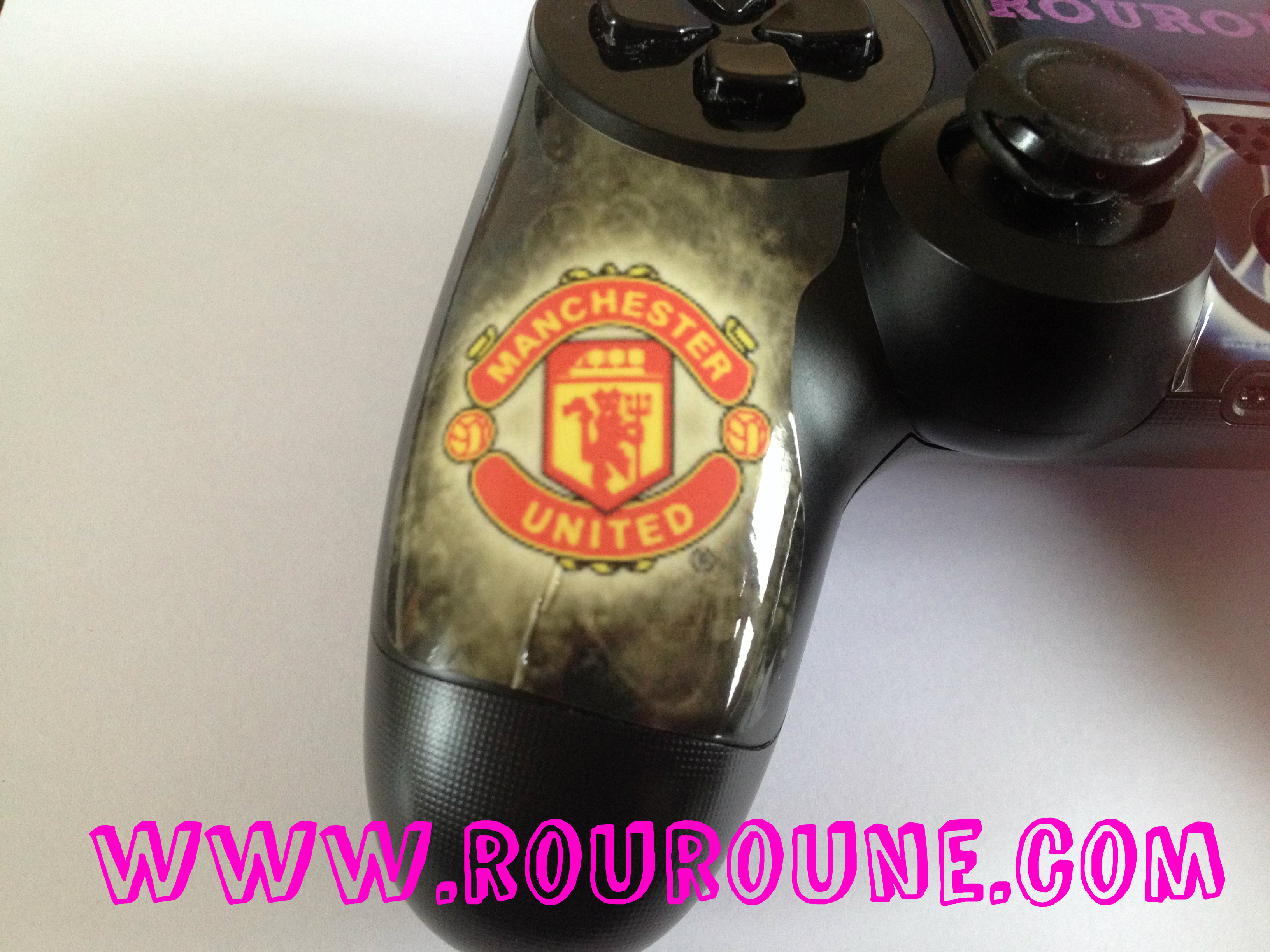 Perso quand je dois faire des trucs minutieux , j’ai la Parkinson qui arrive , c’est dingue ! Pour coller les trucs sur la manette je ne savais pas trop par où commencer , j’ai pris le platine que j’ai réussi à mettre sans trop de mal . Le côté Manchester United disons-le clairement je me suis foiré , j’ai essayé de rattraper mais je n’ai pas réussi . Pour le Psg aucun problème non plus et pour finir mon pseudo « Rouroune » impeccable ! 3 sur 4 ce n’est pas trop mal .