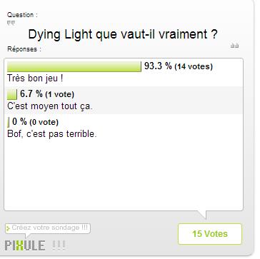 Avec un peu moins de participants que d’habitude, mais le verdict est sans appel pour les joueurs, Dying light est un très bon jeu.