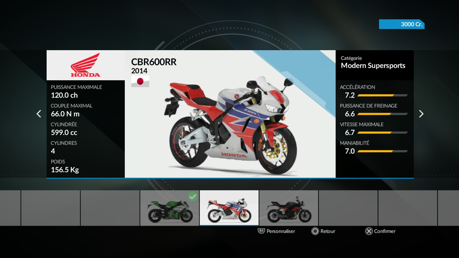 La démo nous propose 3 motos :