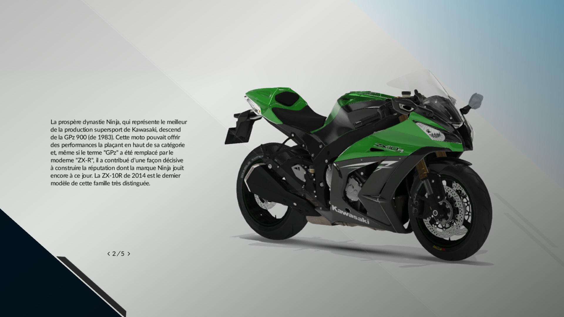 Pareil pour le motard (les gants, le casque…). Pendant le temps de charge, j’ai trouvé un truc très sympa, on y voit des infos sur les constructeurs et les motos, une bonne façon de tuer le temps.