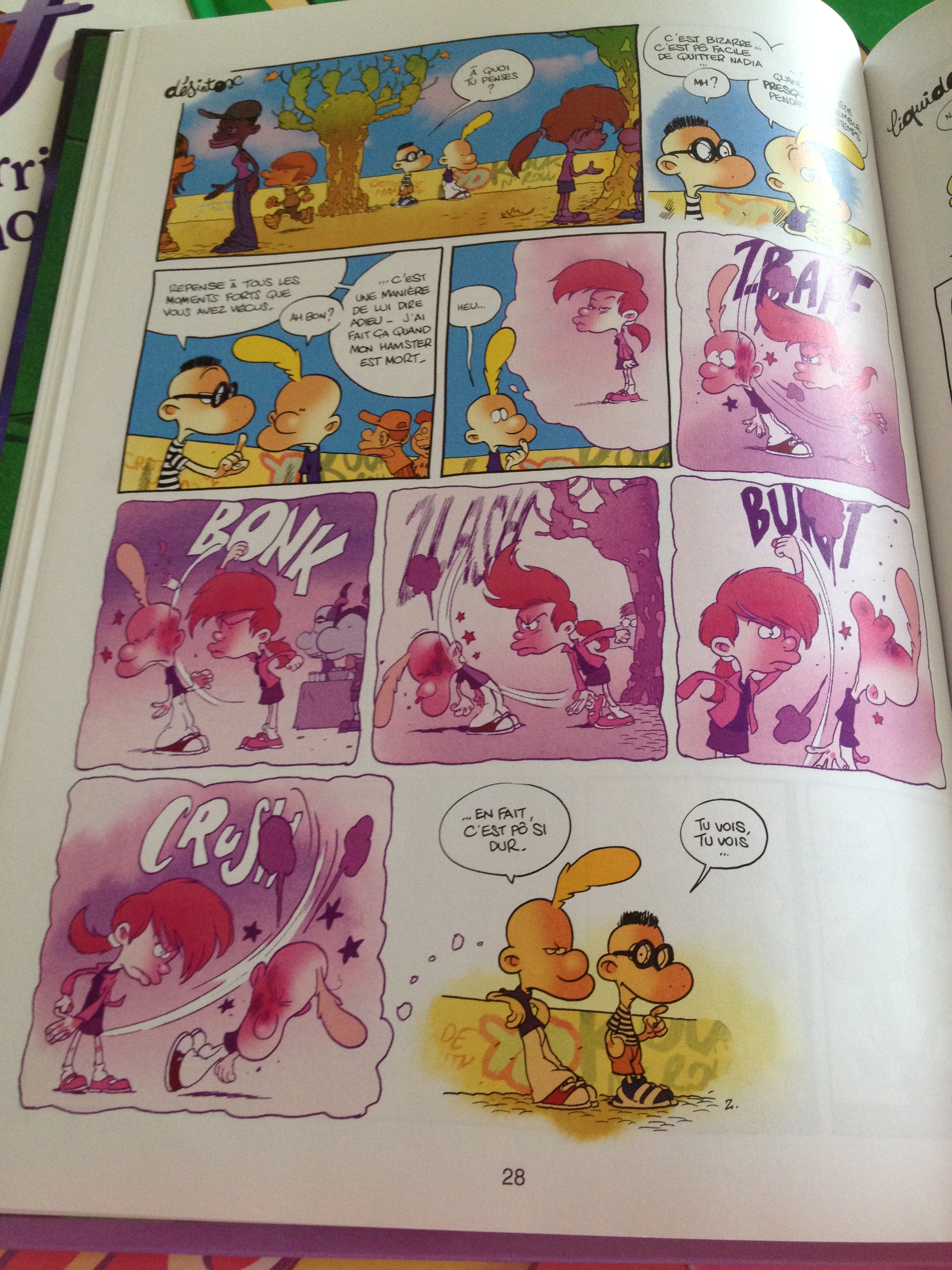 Créé par Zep en 1992, il raconte la vie d’un gamin de 8 ans, de ses parents, de ses potes Manu, Hugo, François… Qui se pose mille et une question sur l’amour, le sexe et d’autres trucs sur la vie. Titeuf très amoureux de Nadia et ne cesse de se prendre des torgnoles, car il s’y prend très mal ! Rajouter à ça une maîtresse horrible qui vous colle des 0 à longueur de temps, vous obtenez Titeuf d’ailleurs son expression préféré, c’est : « c’est pô juste » !
