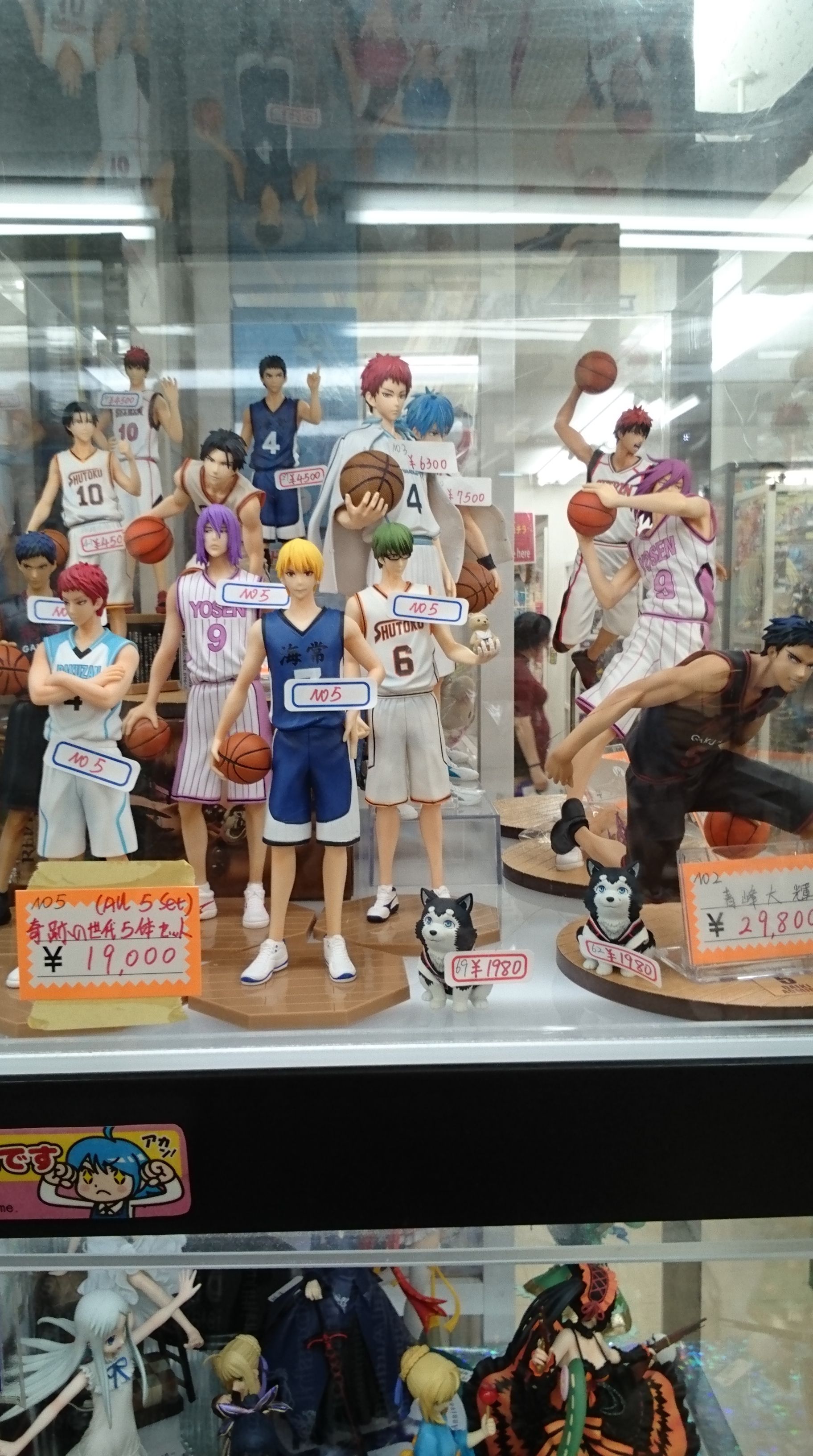Je rentre à l’hôtel pour récupérer ma chambre et prendre une douche (plutôt un bain en fait) pour me détendre un peu. Je retourne ensuite à Akihabara pour faire les boutiques (au départ pour regarder) et il y a des petites boutiques à l’arrière de la grande artère qui proposent des jeux à des prix défiant toute concurrence et un nombre de figurines tout juste ahurissante. Certaines figurines m’étaient inconnues alors que je connaissais le manga ou l’anime. Un exemple avec l’anime (je n’ai pas lu le manga) Kuroko