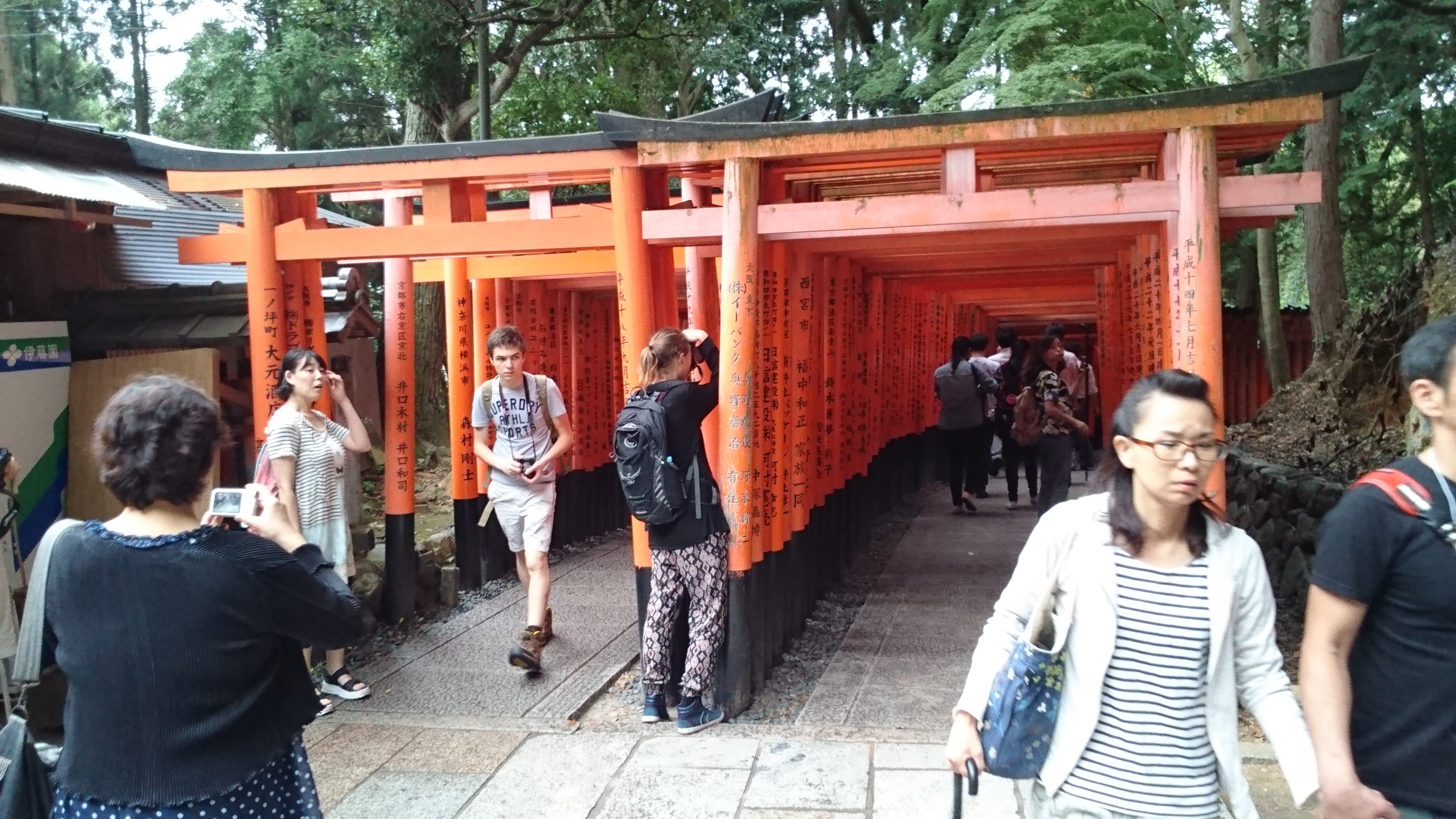 Peut être devrais-je expliquer le concept des 1000 portes (ou Tori). Le site est en fait un sanctuaire dédié aux dieux de l’agriculture niché en haut d’une montagne. Ces Tori sont plantées les unes derrière les autres et sont généreusement donnés par des particuliers ou des entreprises à la ville d’Inari certainement pour que les récoltes soient bonnes (et non par pure charité).
