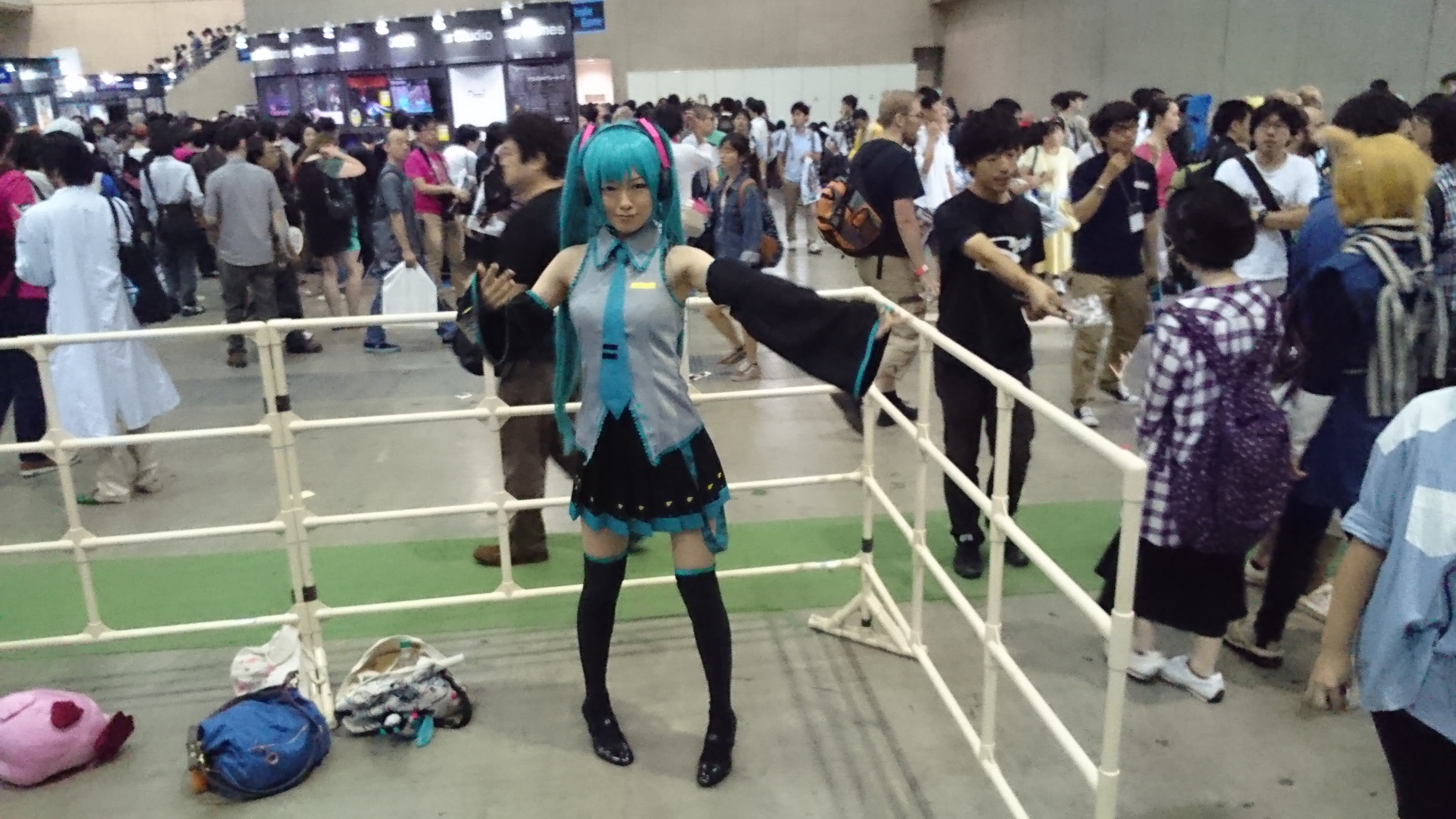 Ensuite viennent les stands des éditeurs. J’ai pu voir le stand Sega où il y avait une heure d’attente avant de pouvoir passer commande. Je n’ai malheureusement pas vu de stand Bandai pour ma figurine Saint Seiya. Par contre, le stand SquarEnix était présent et c’est celui où il y a le plus de monde. Je me décide de faire la queue pour obtenir la figurine MGS V de Quiet. A l’entrée le temps d’attente est d’une heure pour juste voir les produits et une demie heure supplémentaire pour payer et obtenir son cadeau.