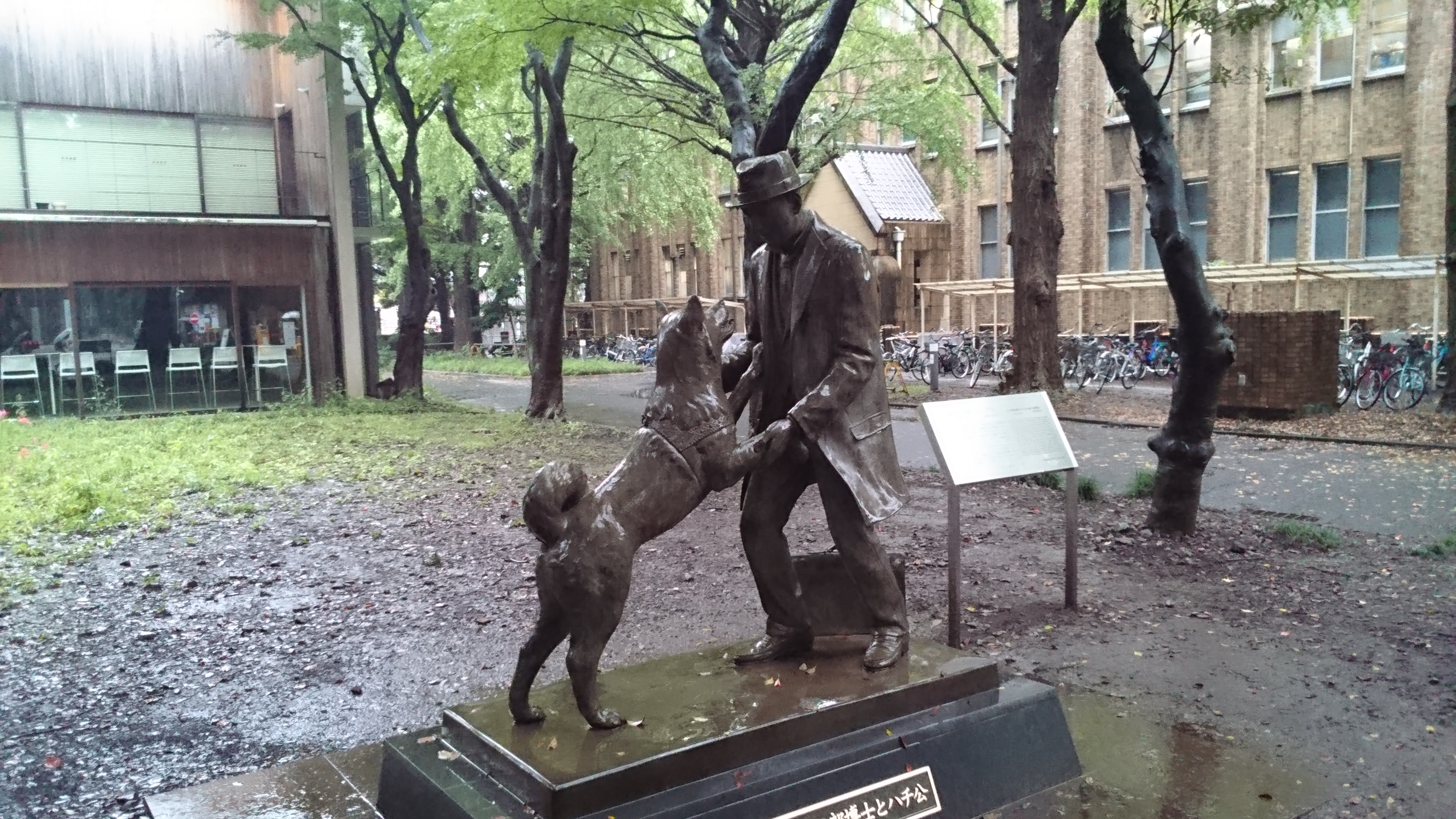 Tant qu’à être à Ueno, je décide d’aller voir la nouvelle statue Hatchiko. Pour ceux qui ont envie de la voir, elle se situe à l’extrémité nord-est du Todaï. Todaï étant l’université de Tokyo. En partant du temple plein de nénuphars (qui est le point le plus proche en partant du parc), il vous faudra pas moins de 90 minutes de marche. Mais voilà ce pour quoi, j’ai fait tant d »effort, Hatchi et son maître