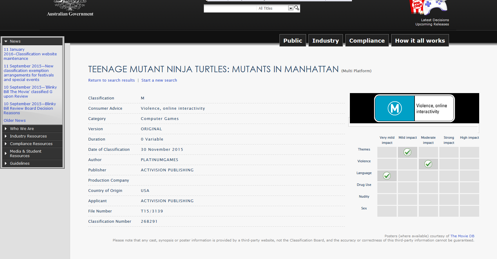 Donc Platinium Games et Activision n’ont pas encore officiellement annoncé Teenage Mutant Ninja Turtles: Mutants in Manhattan (assez de place sur la jaquette pour le titre?) mais nous savons que le jeu a été classé Mature en Australie en novembre 2015 (donc déconseillé aux moins de 15 ans) et que les trophées ont eux aussi été leaké.