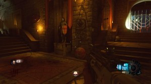 Etape 2 : Tirez sur le logo violet haut dessus de la 2ième porte que vous ouvrez, dehors à côté de double coup. Récupérez la flèche pour débuter votre quête.