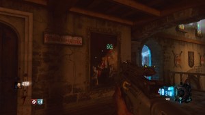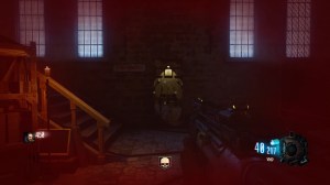 Etape 3 : Rendez-vous ensuite,dans la salle ronde en dessous de l’horloge, un carré violet sera apparue au sol. Il va falloir tuer un zombie au couteau sur cette dalle. Faites carré pour faire sortir la dalle, elle va donc s’élever. Elle vous dira qu’il y a 6 cranes éparpiller sur la map et qu’il va falloir récupérer.