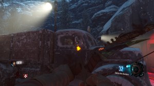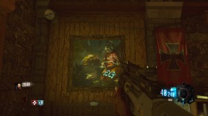 Etape 3 : Prenez la flèche pour démarrer votre quête. Direction la fusée où vous devez attendre le départ de celle-ci, au départ de celle-ci, mettez-vous à l’abri à l’intérieur du bâtiment, tuez les quelques zombies qui vont sortir, attendez que les portes s’ouvrent, sortez rapidement et regardez sur votre DROITE, il y a une mini boule de feu, tirez dessus RAPIDEMENT. Si vous avez réussi celle-ci, la boule de feu s’envole et deviens un gros soleil sur la map en haut.