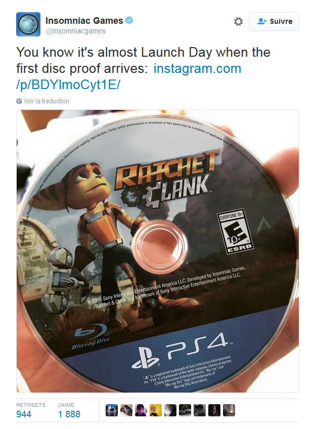 Il y a tout juste 8 jours, je vous annonçais qu’Uncharted 4 était prêt à être pressé sur support Blu-ray. Bonne nouvelle! Le jeu Ratchet & Clank d’Insomniac Games est lui aussi passé GOLD récemment!