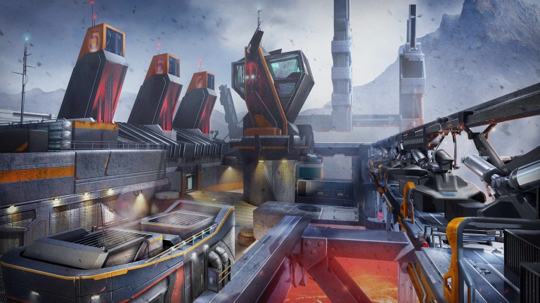 Rift, au cœur d’un volcan se cache un complexe militaire futuriste. Des espaces étroits, un nouveau système de déplacement (les rails suspendus).