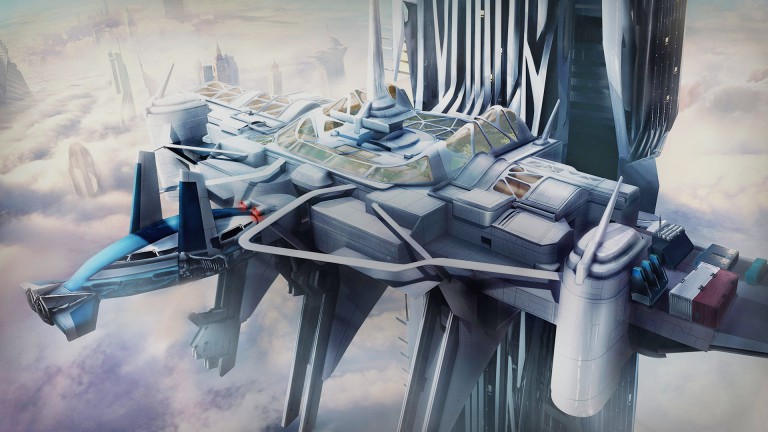 Spire, un terminal d’aéroport sub-orbital perché au dessus des nuages. Beaucoup de niveaux, de zones ouvertes, mais aussi du vide! Gare à la chute