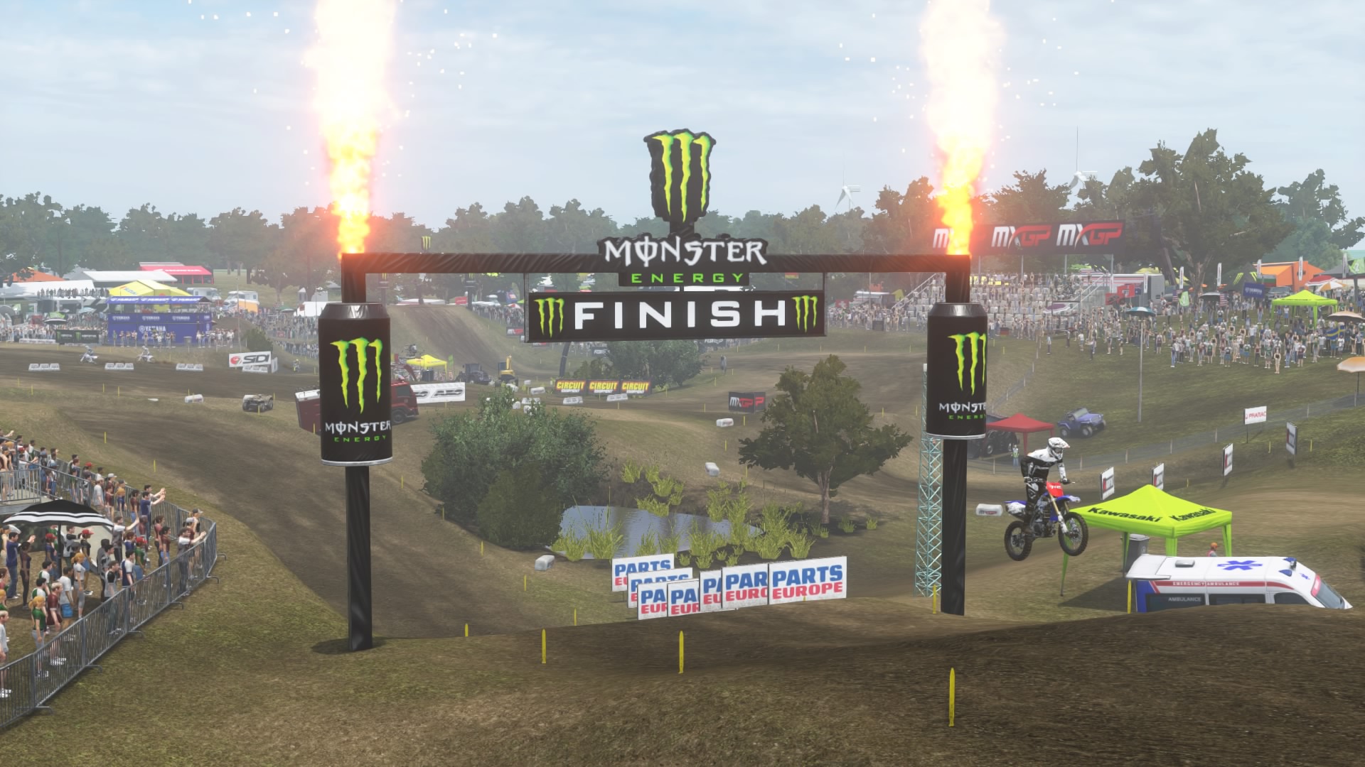 Milestones a intégré la compétition Monster Energy FIM MXoN. Cette compétition vous propose de sélectionner une nation et d’affronter les autres pays sur un tracé (cette année elle se passe en France) et sur 3 manches. Pourquoi 3 manches ? Tout simplement parce que chaque nation a 3 pilotes et chacun court sur une cylindrée différente. La plus petite est la MX2 puis le MXGP et enfin la catégorie ouverte. La nation qui a marqué le plus de points sur les 3 manches remporte la compétition. J’ai bien aimé ce mode par forcément grâce à l’originalité de la course mais surtout parce qu’elle amène un nouveau tracé en plus des 18 déjà proposés.