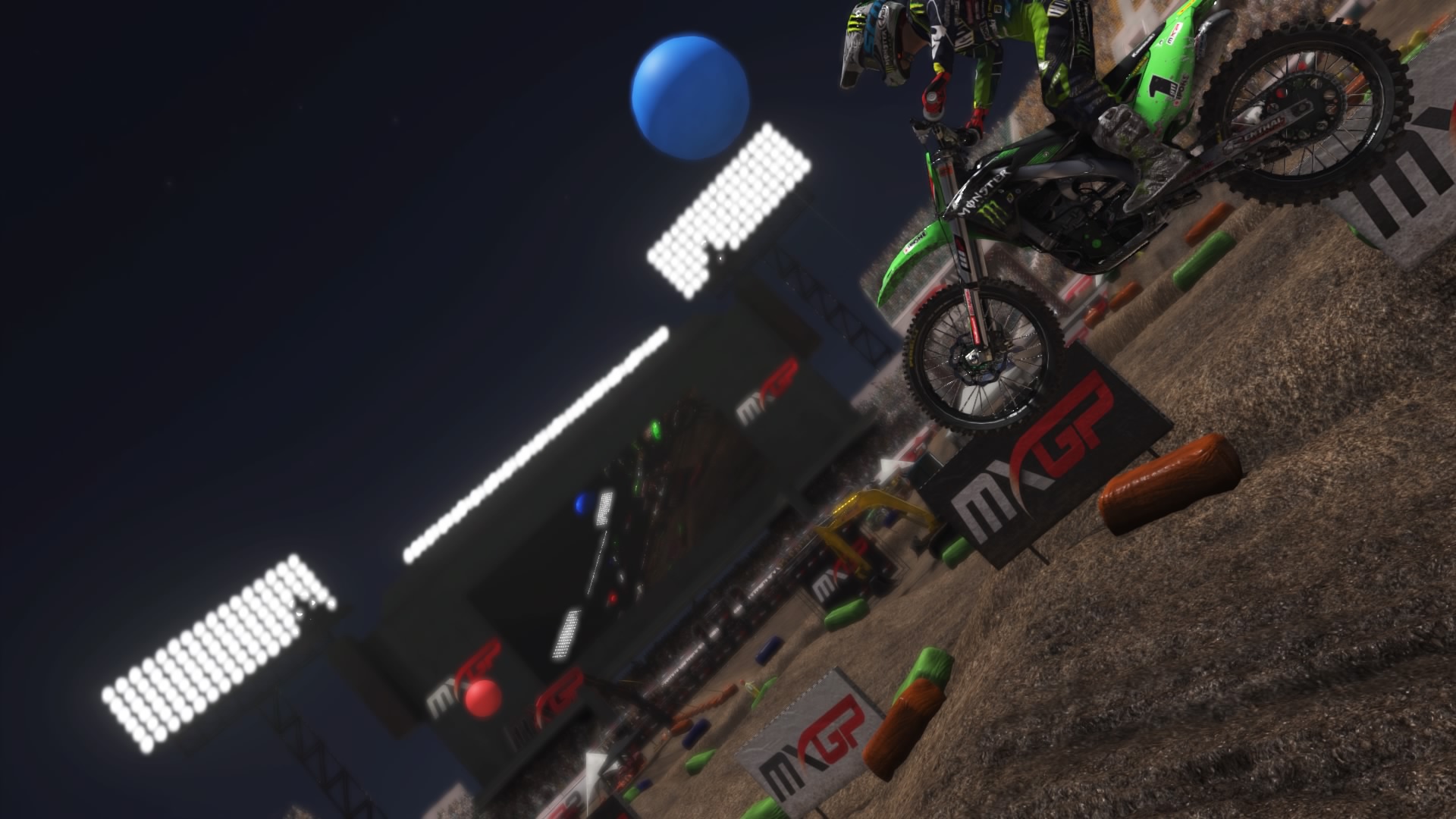 La dernière nouveauté est franchement cool puisqu’il s’agit des Stadium Series. Malheureusement, il n’y a que 4 pauvres circuits mais la manière de piloter est assez différente des tracés en extérieur. Le pilotage est un peu plus technique et un peu plus bagarreur. Tout d’abord, les tracés sur moins larges tout en ayant le même nombre de concurrents et forcément le premier virage ressemble à un départ en vacances sur l’autoroute du soleil en plein mois d’août. Il faut donc apprendre à jouer des coudes mais aussi à être un peu plus malin (et ce n’est pas très compliqué) que l’IA en privilégiant l’extérieur relevé. La gestion des différents types de bosses est primordiale (même en niveau facile). Un saut trop long ou trop court vous fera perdre une ou plusieurs places. Il y a aussi la spécificité de ces courses américaines : les whoops. Pour schématiser, il s’agit d’une bosse légèrement plus haute et légèrement moins large qu’un ralentisseur sur les routes. Généralement ces bosses sont toutes alignées les unes derrière les autres. Ces whoops doivent être pris en faisant un léger wheeling arrière pour ne pas être ralenti. C’est une bonne idée qui mériterait dans un prochain épisode d’être un peu plus étoffé !