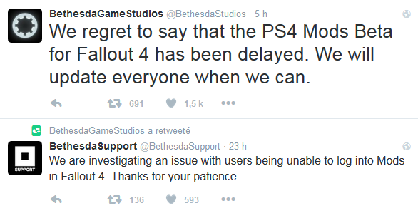 « Nous sommes dans le regret de vous annoncer que la bêta pour les mods de Fallout 4 sur PS4 a été repoussée. Nous vous donnerons des nouvelles à ce sujet dès que nous le pouvons. »