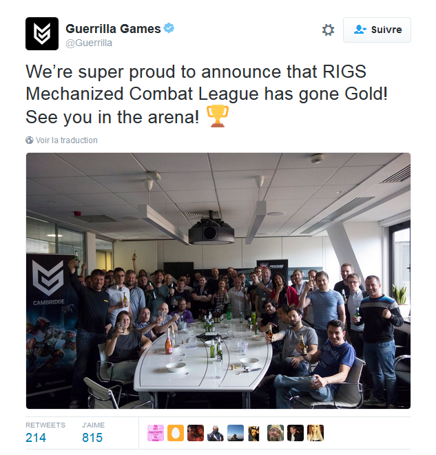 _ Prévu pour le 13 octobre prochain, Guerrilla Games nous annonce via son compte Twitter que RIGS : Mechanized Combat League est passé Gold.