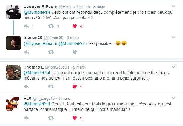 Pour ce 8e « avis des Twittos de @MumblePs4 » je vous ai posé la question comme d’habitude via Twitter qui était la suivante :