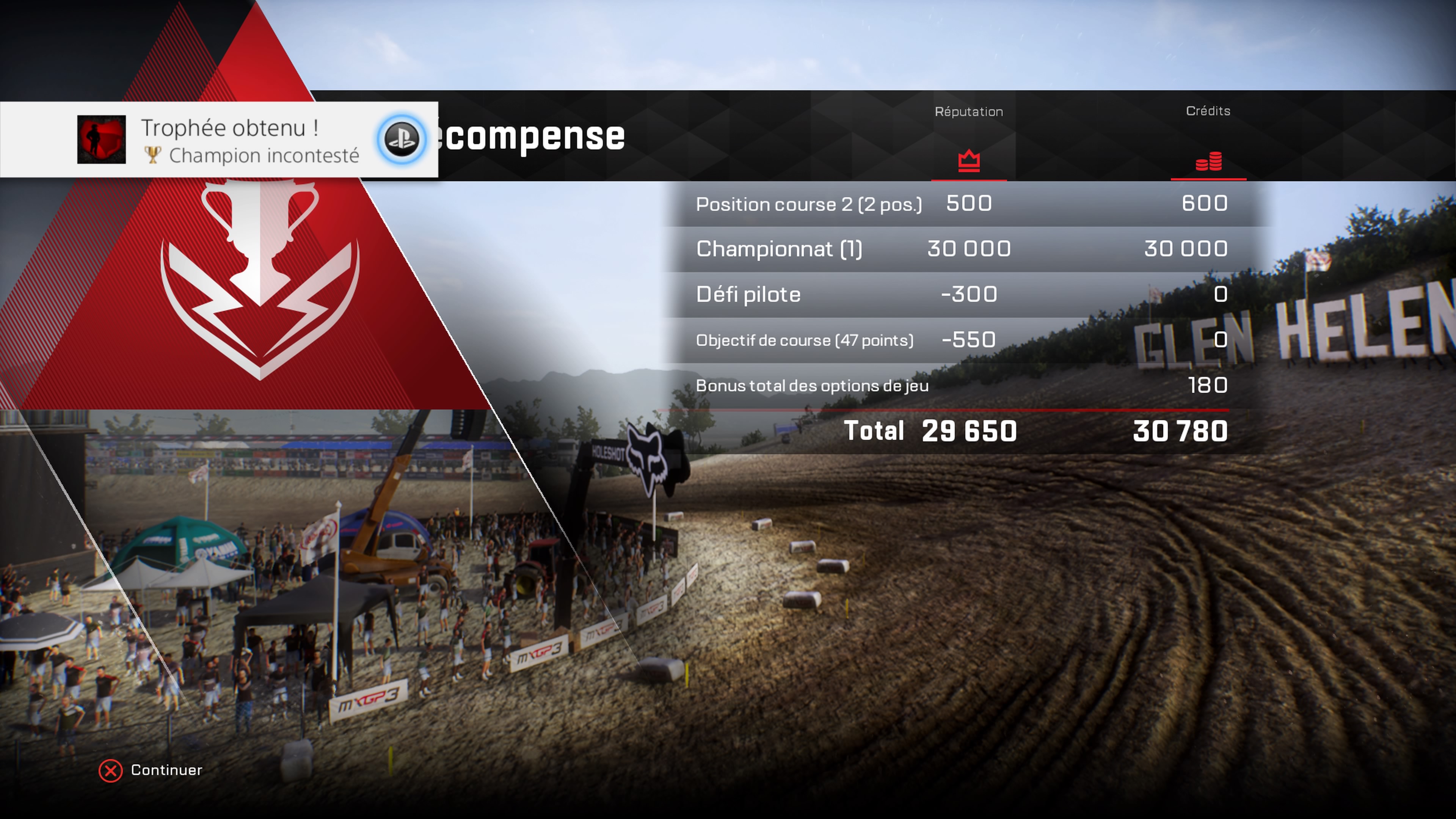 Trophée Champion incontesté : Devenez champion du monde dans la catégorie MXGP en mode carrière
