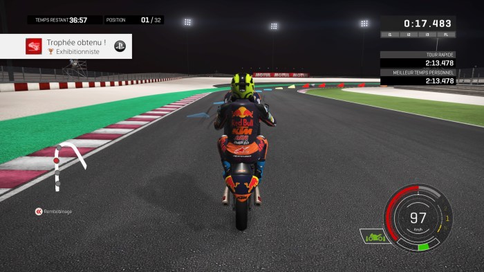 Après 2 ou 3 courses en mode carrière uniquement, le jeu vous proposera un contrat dans la Red Bull MotoGP Rookies Cup. Acceptez le et remportez une course. Avec l’IA en mode très facile (et même facile), vous ne devriez rencontrer aucun problème.