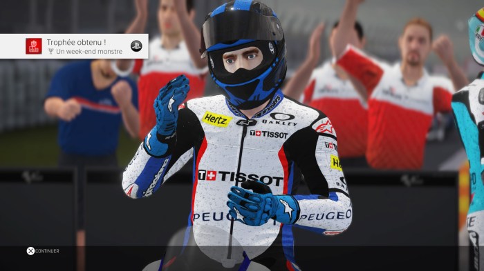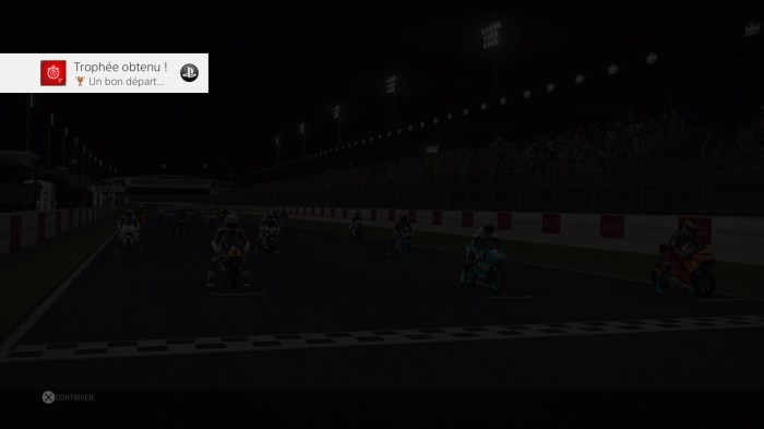 Je vous conseille d’attendre d’être en catégorie MotoGp pour obtenir ce trophée. Au début de la carrière manager vous devez absolument faire des économies afin de pouvoir acheter des motos dans les catégories supérieures qui coûtent chacune très chères mais elles vous rapportent beaucoup d’argent et donc plus de facilité d’effectuer des améliorations de votre moto.