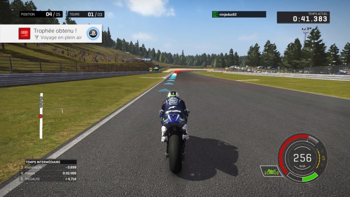 Allez dans le mode course simple et sélectionnez un circuit avec une longue ligne droite comme Austin ou Barcelone et pour plus de facilité prenez une MotoGP.