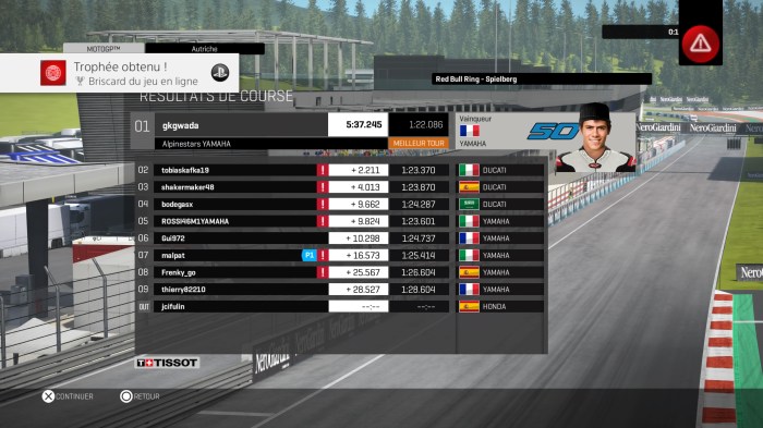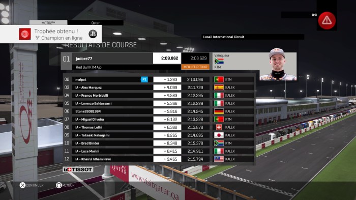 Trophée Attrape moi si tu peux : Obtenez le meilleur temps lors d’une course MotoGP dans n’importe quel mode hors ligne