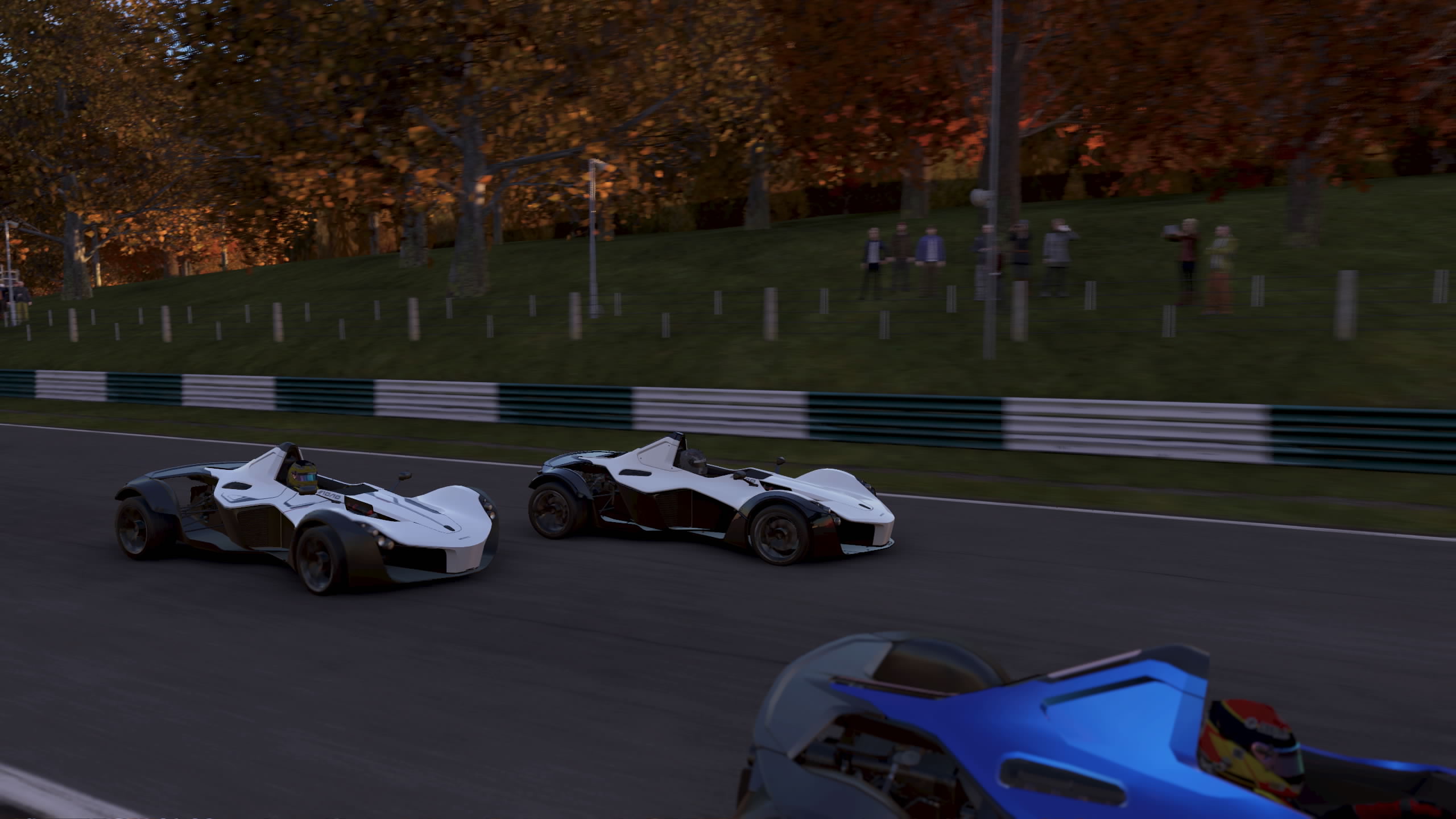 Je me retrouve sur le circuit de Snetterton en Angleterre et on me propose un choix entre le KTM Xbow R et la Caterham Seven 6. Comme la course va se dérouler sous la pluie, je fais un choix logique et à priori intelligent en prenant la KTM moins puissante et plus lourde (idéal pour la pluie en théorie).
