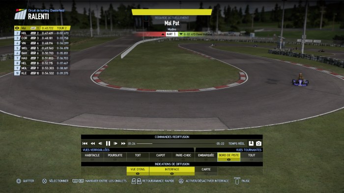J’ai profité de cette course pour essayer le mode rediffusion. La vidéo n’est pas très fluide, pas très beau, pas très dynamique et ça pixellise à mort. On enchaîne les plans fixes et éloignés. On a la possibilité de switcher sur les vues pare choc, casque etc … mais on est à des années lumières des replays de Gran Turismo. Vous allez me dire que ce mode ne sert à rien et dans la théorie, je serais d’accord avec vous. Mais dans les jeux de course, j’aime regarder les vidéos d’une course où j’ai été bon avec de beaux dépassements, de belles trajectoires etc … Et puis avec la fonction share, nous avons la possibilité d’envoyer nos exploits sur nos réseaux sociaux et là j’ai honte de pouvoir partager les replays de ce Project Cars 2 …
