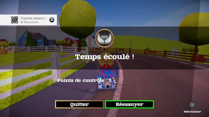 Voici un petit jeu sympathique que j’ai fait avec miss Elo, un jeu qui ressemble à Mario Kart, mais en version vieux 😀 . J’ai choppé ce jeu sur le store à 3,99€ ! Du coup à ce prix-là, ça fait le platine pas cher et une bonne tranche de rigolade ^^.