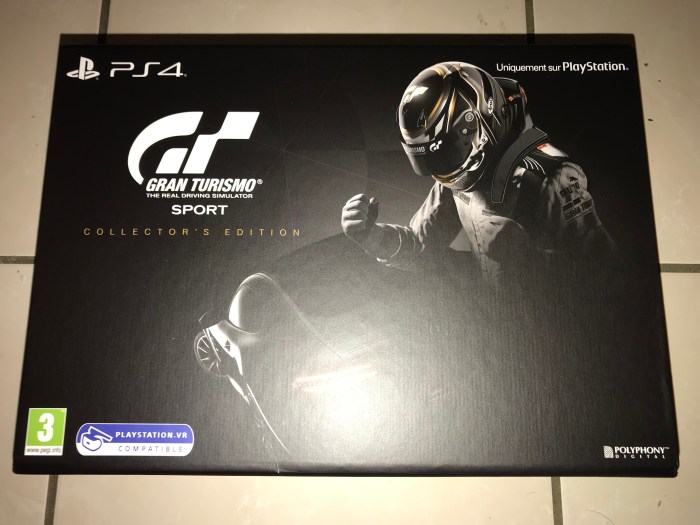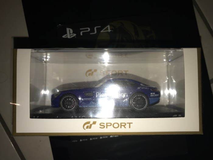 Dans cette édition collector, on retrouve une miniature d’une Mercedes AMG GT aux couleurs de Playstation.