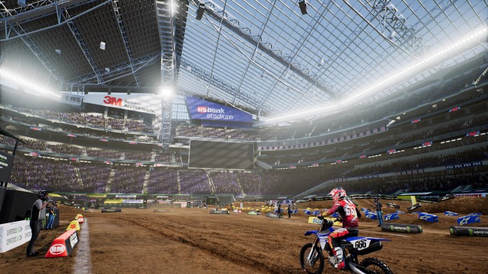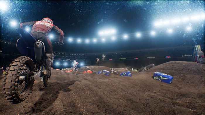 Comme je l’ai précisé dans ma petite introduction, toutes les courses de jeu se déroulent à l’intérieur d’une enceinte sportive. Alors évidemment, niveau diversité visuelle, on est loin d’un MX GP et de ses décors naturels et différents selon le pays pourtant du même développeur (Milestones).