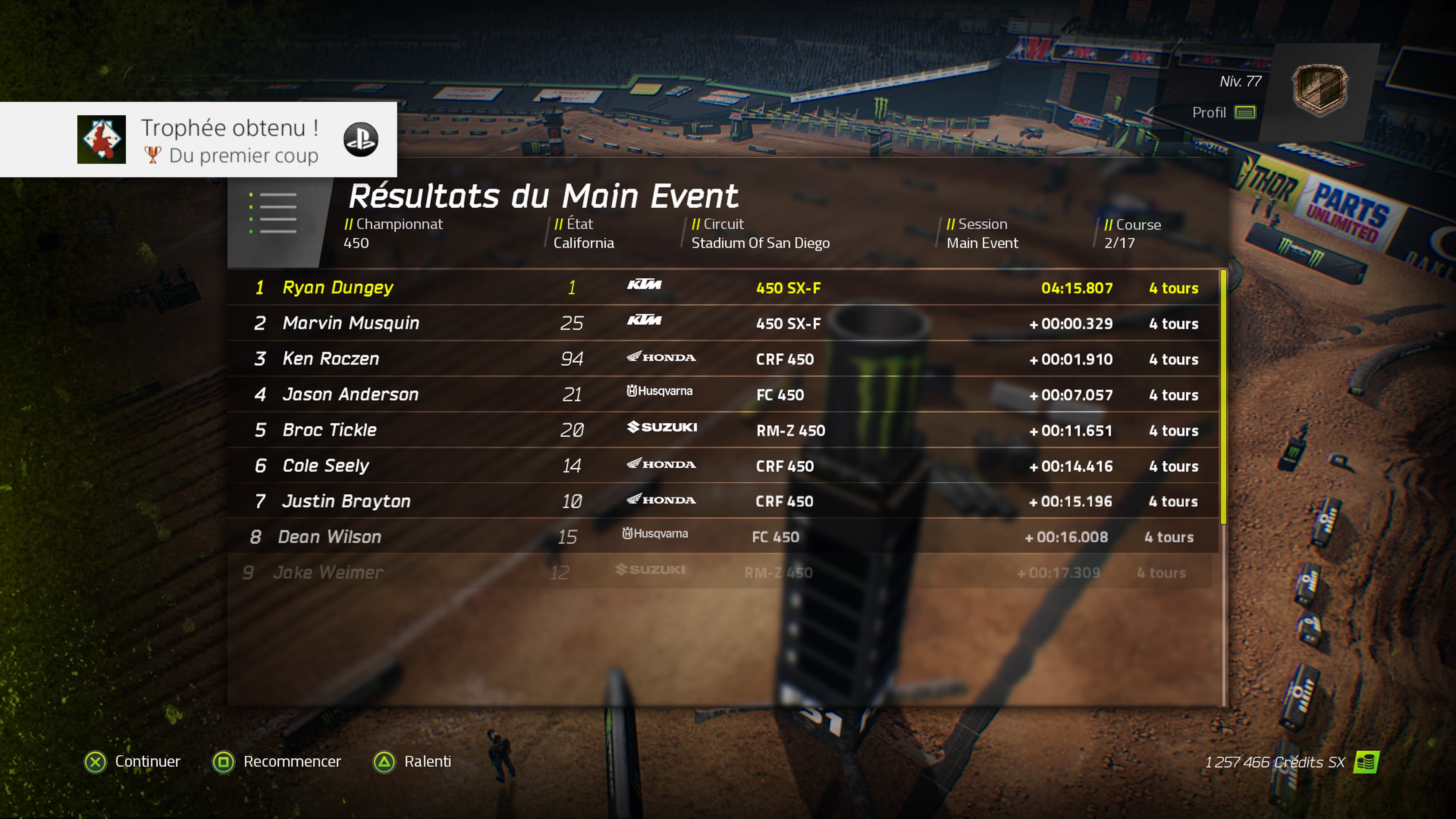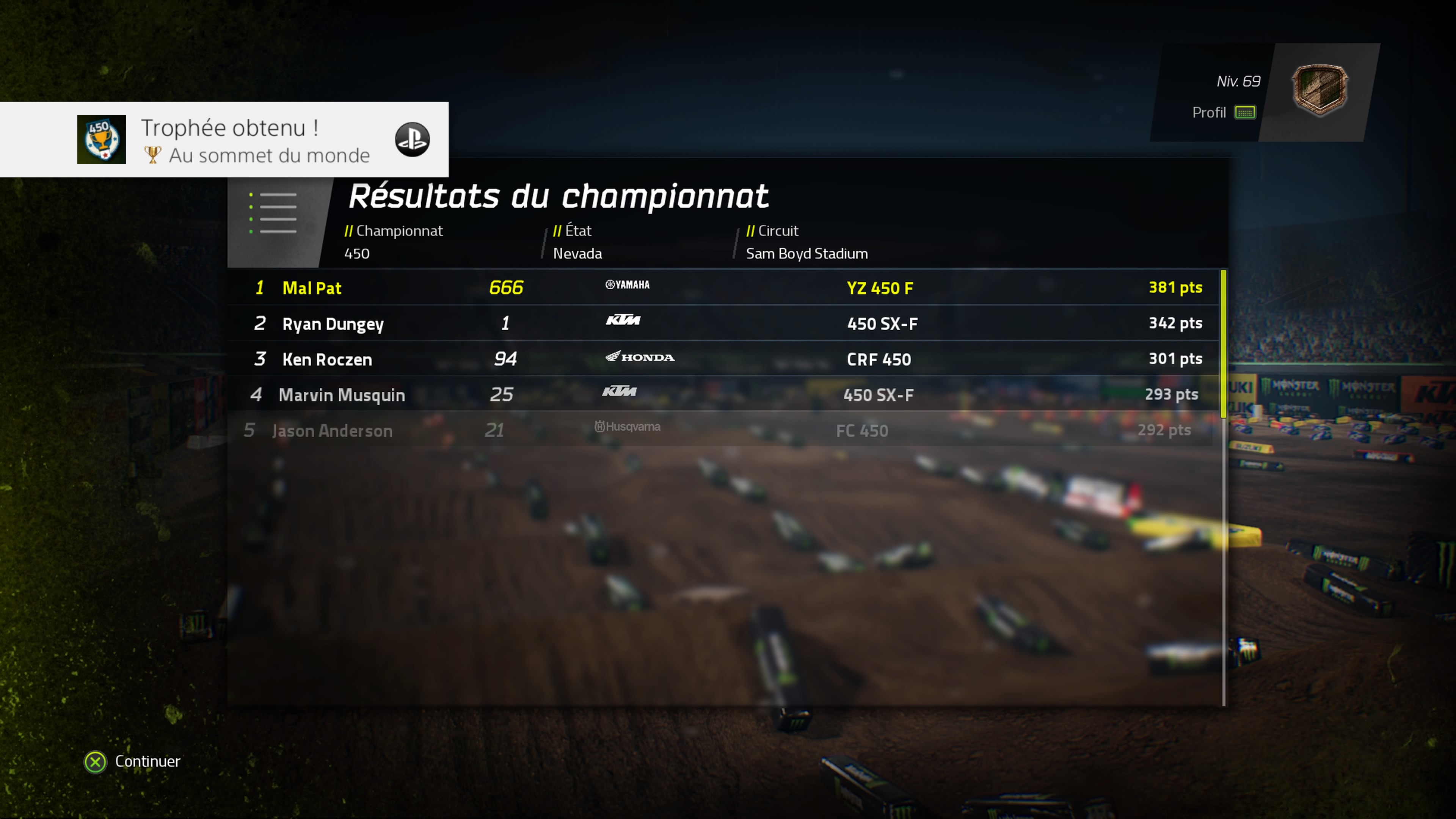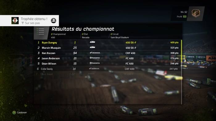 Trophée Au sommet du monde : Finir dans les trois premiers du championnat 450 en mode carrière