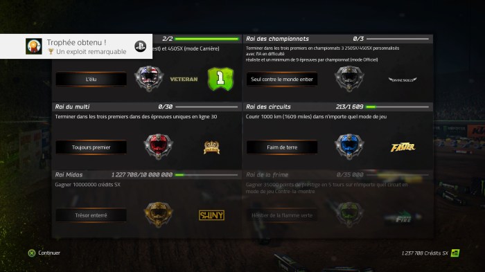 Trophée Un exploit remarquable : Terminer l’un des défis SX