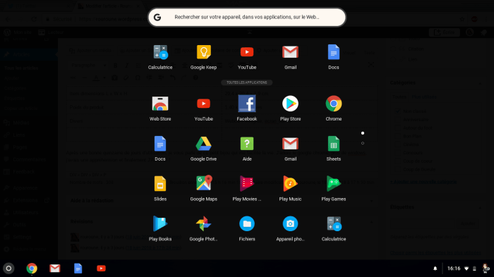 Après une bonne quinzaine de jours d’utilisation, je vous parle de ce petit bijou qui me facilite la vie. J’adore le google chrome, plus de windows, j’avais une appréhension et finalement J’ADORE ! Toutes les applications sont là pour travailler, naviguer, c’est simple et efficace et sur le chrome web vous trouverez tout ce qu’il vous faut. Ce n’est pas un pc, il n’a pas beaucoup de disque dur, c’est très bien pour faire du traitement texte, naviguer sur le net, regarder ses mails, un excellent compagnon de voyage.