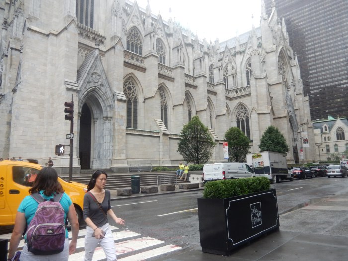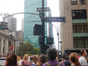 On va où ? Il faut qu’on s’occupe de notre Métrocard, facile à faire, elle coûte 33$ en illimité pour 7 jours, c’est parti pour la 5th Avenue ? Ouais allez go ! On remonte comme ça jusqu’à Central Park, on y voit, beaucoup de chose, des magasins, des buildings, une cathédrale, la Trump tower avec une manif, c’est le champs Elysée américain ! En grandeurs américain 🙂