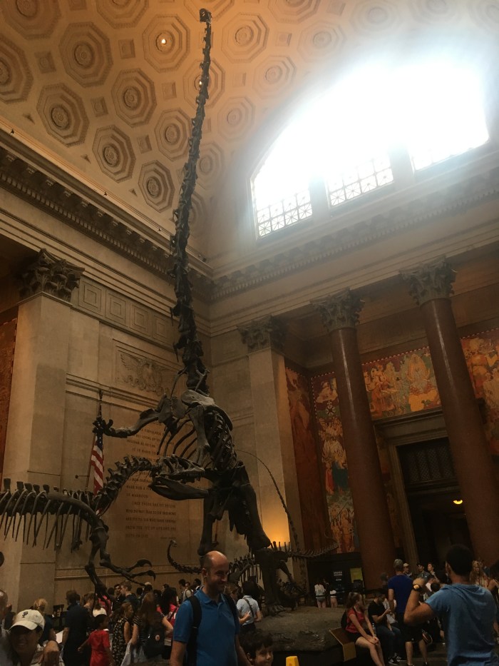 Plus de 2 heures de marche dans Central Park nous en avons fait même pas la moitié, c’est dire la taille de ce park ! Nous avons vu : la statue d’Alice aux pays des merveilles, un truc de Baseball, d’immense verdure, le grand réservoir, de l’eau où les gamins font naviguer leur voile, un grand théâtre et pleins d’écureuils 😀 Après on est sorti côté west pour y voir le muséum d’histoire naturelle, où nous avons retrouvé la carcasse de Denver 😀
