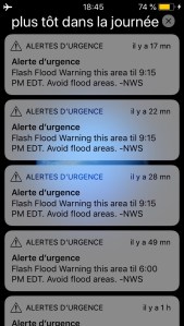 Go to the Staten Island, en direction du ferry donc, mais bordel, c’est quoi cet orage ? De la flotte à remplir nos slips et nos bottes, mais merde on a foutu nos maillots de bain pour faire nos poufs sur la plage de New Dorp Beach. Le temps change radicalement, alors que ce matin il faisait un soleil de plomb. Bon on fait quoi ? Bah on va voir quand même l’île, mon téléphone panique et m’informe qu’il y a une alerte orage, mais genre il panique vraiment et nous fait paniquer aussi ce con.