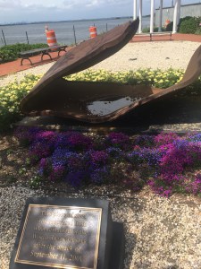 On décide d’aller faire un tour à Rockaway Park, pas loin de la mer et l’occasion de découvrir une autre partie du pays. En métro on aperçoit un peu le Queen, seul quartier où on a pas eu le temps d’aller. Pause miam miam donc à Rockaway. Un grand supermarché est là près de la route, ça fait penser à quelques séries ou films où les mamans viennent faire leur course, avec une vue magnifique sur New-York. Un petit parc en hommage aux victimes du 11 septembre, d’ailleurs une pièce de l’une des 2 tours en présente.
