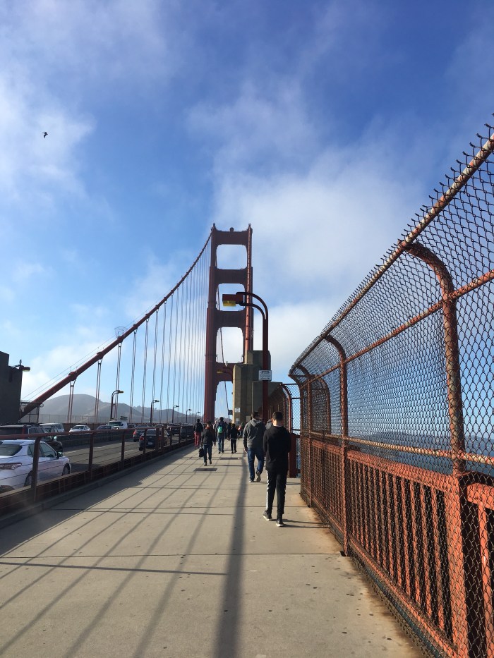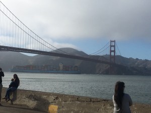 Bon auprès des restaurants il y a quand même de bonnes odeurs ça nous met en appétit on décide de se poser ici pour manger, service sympa et cadre agréable. On continue notre balade pour digérer notre repas et là une longue balade nous attend, on décide d’aller jusqu’au Golden Gate Bridge à pied.
