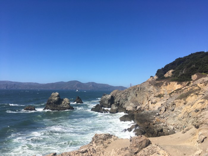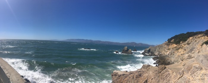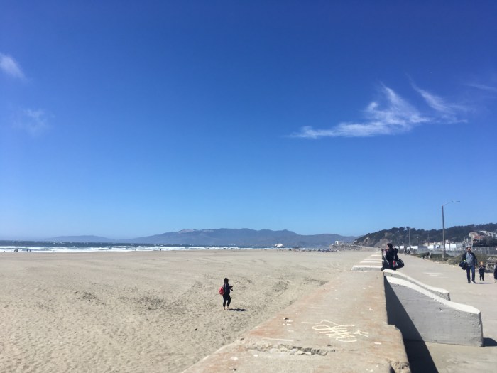 Sorti du parc, on arrive en bord de mer « Ocean Beach » quelle plage, une grande balade nous attend, on sait que tout au bout, la vue va être magnifique et qu’après on verra le pont de Golden Gate Bridge ! Mieux que des mots, des photos !