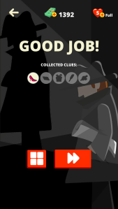 Du coup pas grand-chose à avoir avec un jeu de détective, on se retrouve à chercher des différences entre deux images … Rien de bien palpitant, amusant pendant 30 minutes, mais on se lasse vite, ça occupe un peu. Il y a 20 levels en tout et 10 niveaux par levels en moyenne il y a 3 à 5 différences par niveau, parmi ses différences, vous allez trouver des indices, pour passer au level suivant … On est bien loin du super thriller 😦