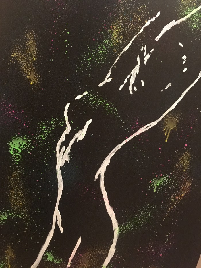 Dépression, anxiété, crise d’angoisse, de panique, insomnie, la peur de mourir à chaque instant, voir la mort d’aussi près jeune de personne chère à son cœur, grave, marque et le cerveau vous le rappelle à chaque moment (Enculeyyy) . Après le sport, médoc, thérapie, je peux dire à 35 ans que la peinture m’aide, je peins généralement avec de la musique et je dois dire que c’est 2 la font bon ménage, je n’ai jamais été aussi bien dans mon quotidien et dans ma tête de clown que tout le monde pense aller bien que depuis que je peins