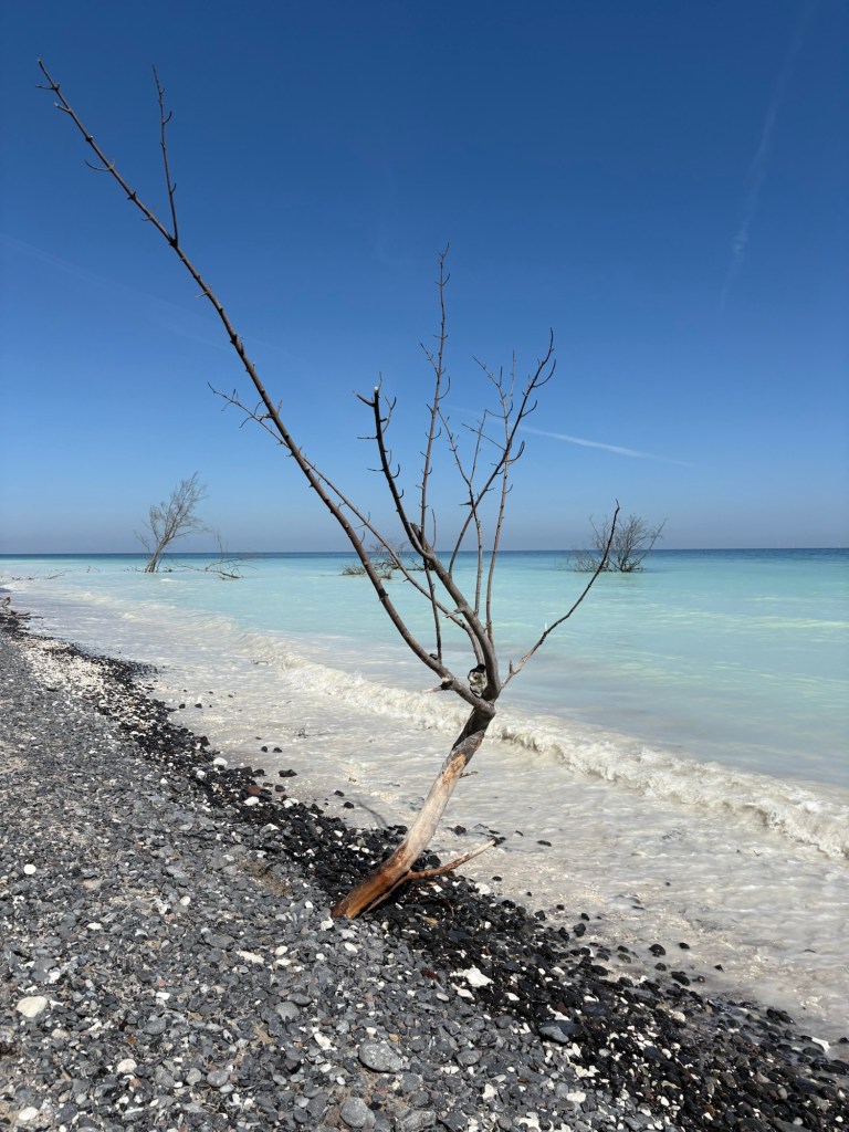 Nous avons donc fait le tour de l’île en van, elle fait 36 km ça va aller vite, mais on a pris le temps. L’occasion pour Baluchon de rouler une dernière fois sur le sable 🙂 J’adoooore