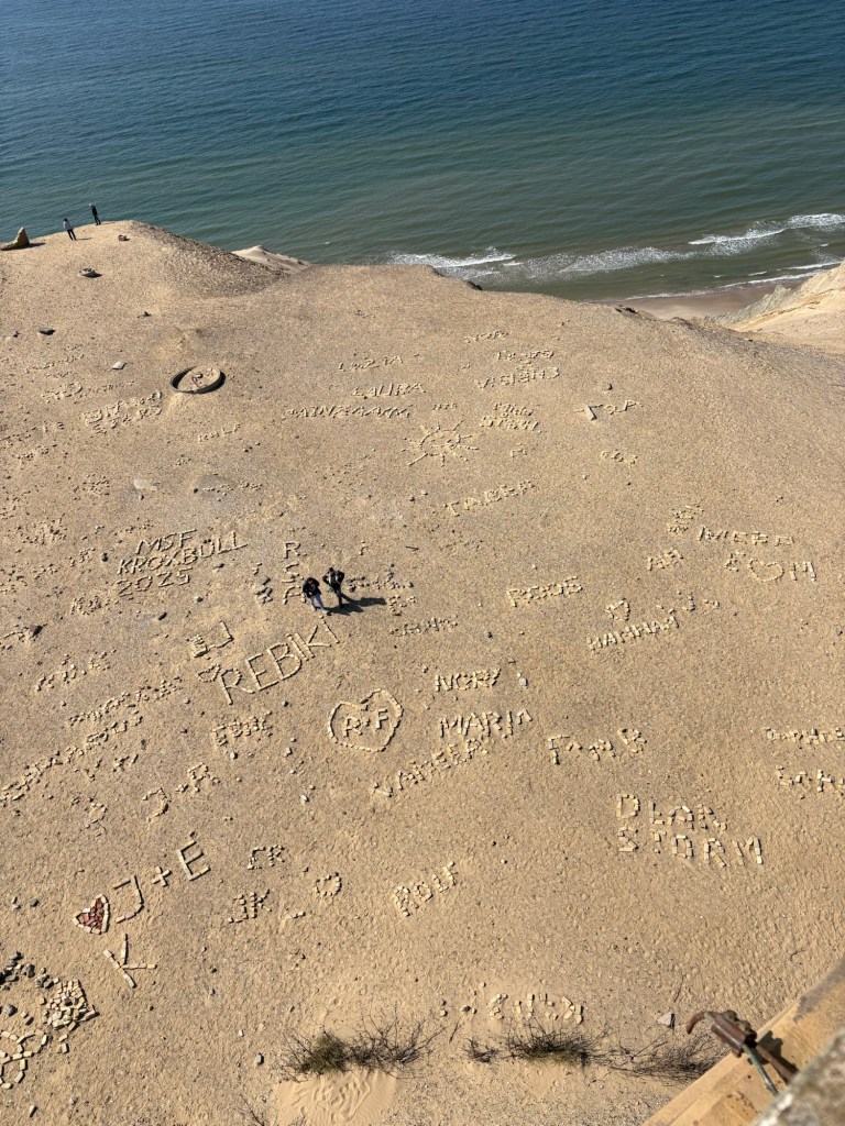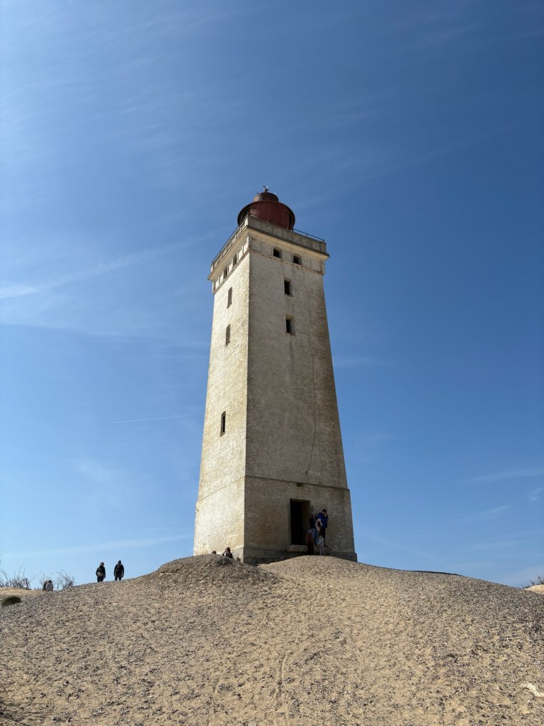 Rubjerg Knude, un phare ensablé de 1899, mais qui a était déplacé de 70 mètres en 2019, sinon il allait tomber à la mer ! Il y a d’ailleurs encore quelques briques qui traînent par terre où les gens écrivent avec. Une jolie vue 🥰