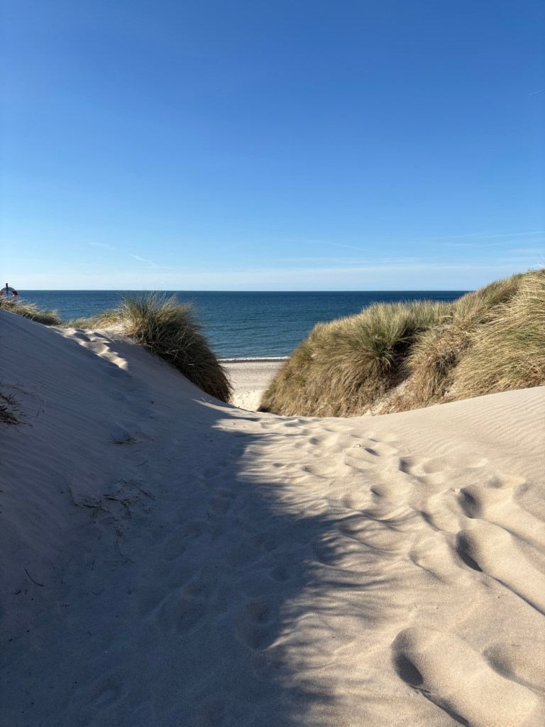 Enfin la dune de sable, Råbjerg Mile, quel spectacle ! Entre désert et végétation, c’est magnifique et qui offre un super coucher de soleil 🥰🌅
